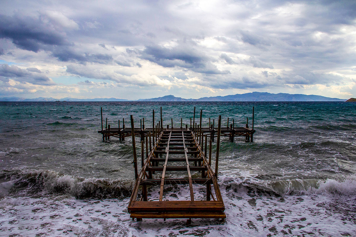 ÇIPLAK: Yazın tatilcilerle dolup taşan iskeleler, kışın çıplak ve yalnız, lodosun kırıcı dalgalarına direnmeye çalışır. (Fotoğraf: Ahmet Asatekin)