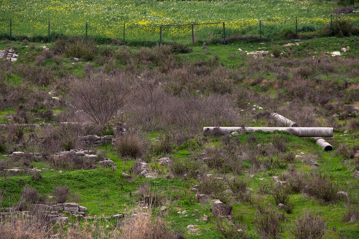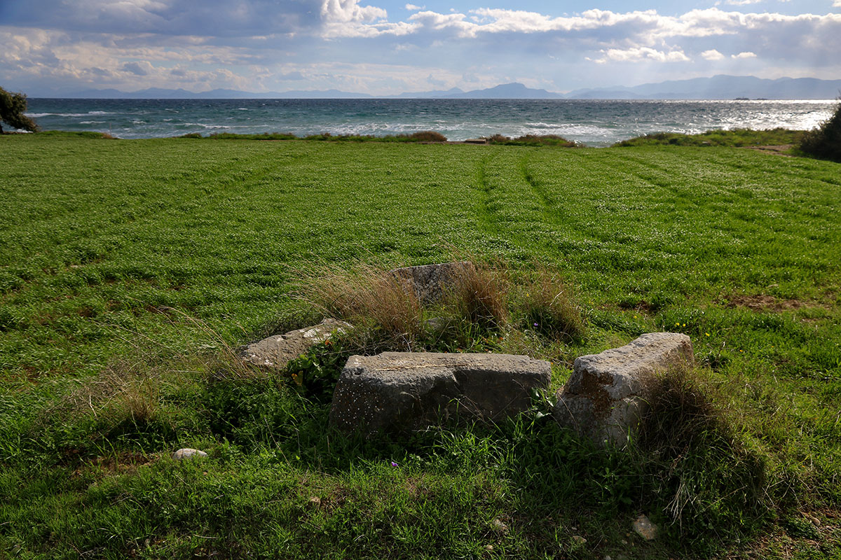 BEKÇİ: 2500 yıl öncesinden kalmış dört büyük yapı taşı, bereketli bir tarlanın başında bekçi gibi dikilir, toprağın altındaki zenginliğin imi, buz dağının görünen parçaları. (Fotoğraf: Ayfer Gençer)