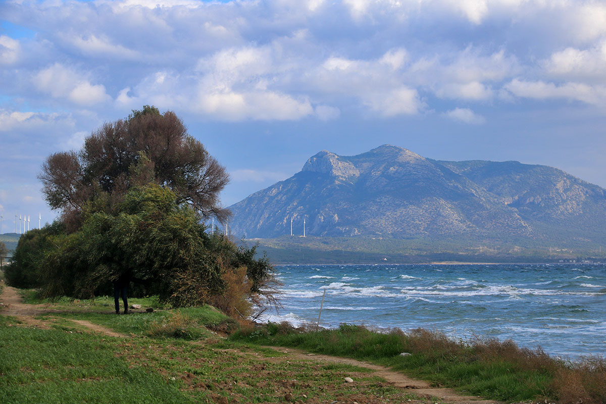 TABLO: Emecik Dağı, bulut, deniz, insan, ova… Yürürüz bir tablonun parçası olduğumuzu bilmeden. (Fotoğraf: İlhan Bıçakcı)