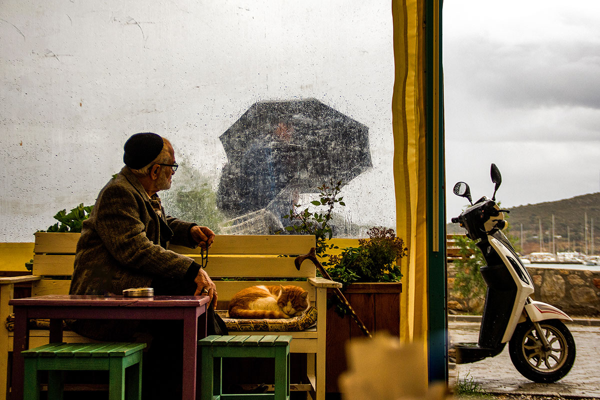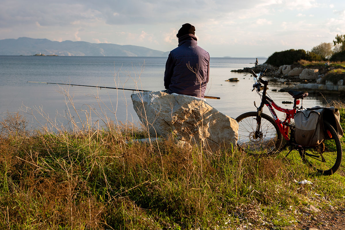 BALIKÇI: Balıkçı için balık belki bahanedir. Pedallar Burgaz yollarını, bir kaya seçer kendine. Oltasını sallar, ufka bakar ve kendini izler; geçmiş, gelecek, hayaller, pişmanlıklar, mutlu anlar ve özlemler balıklar gibi kaynaşır içinde. (Fotoğraf: Püren Türker)