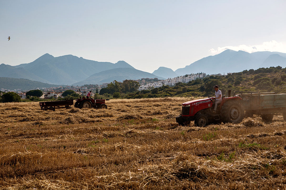 KADER: Bazen hareketlenir Burgaz. Traktörler vızır vızır gidip gelir. Hasat zamanıdır bu, hayata tutunma çabasıdır. İnsanın kendine biçtiği kaderidir topraktan ekmeğini çıkarmak, didinir durur. (Fotoğraf: Püren Türker)