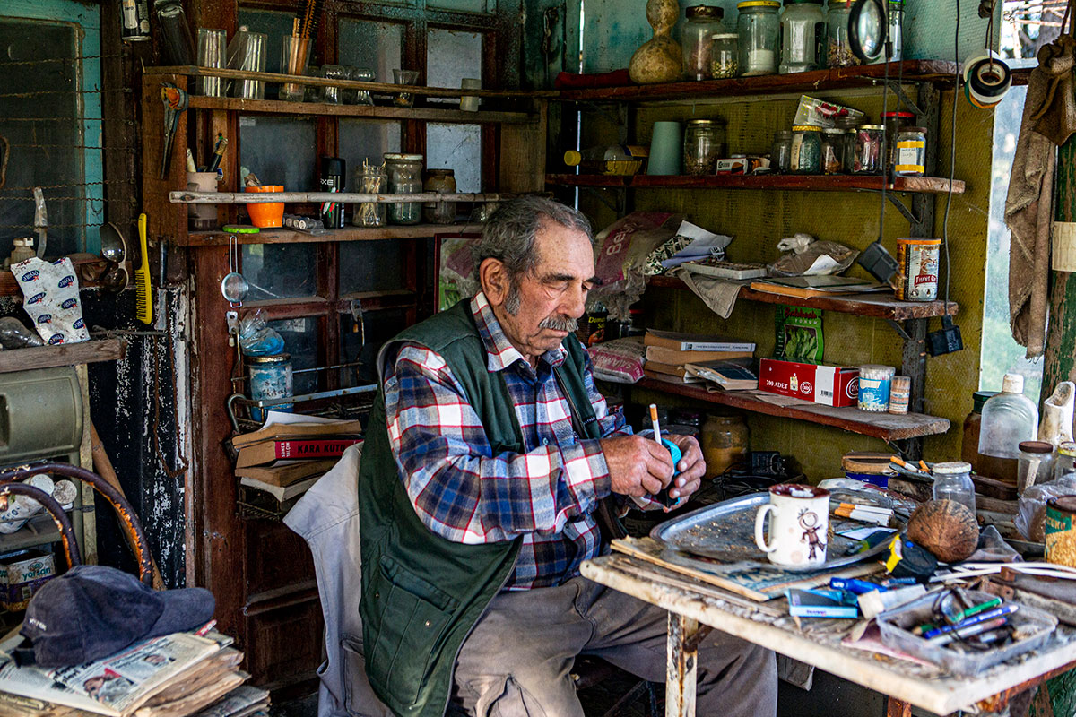 EMEKLİ: Emeklisi çoktur Datça’nın, doğru. Eski Avukat Birgen Amca da kırk yıllık Burgaz sakini. Bahçesiyle, ufak kulübesinde ufak tefek tamirat işleriyle uğraşıyor. Belli ki gelmiş ve kopamamış Burgaz’dan. Acelesi yok, zamanı bol, ciddiyetle yaklaşıyor yaptığı işe. (Fotoğraf: Püren Türker)