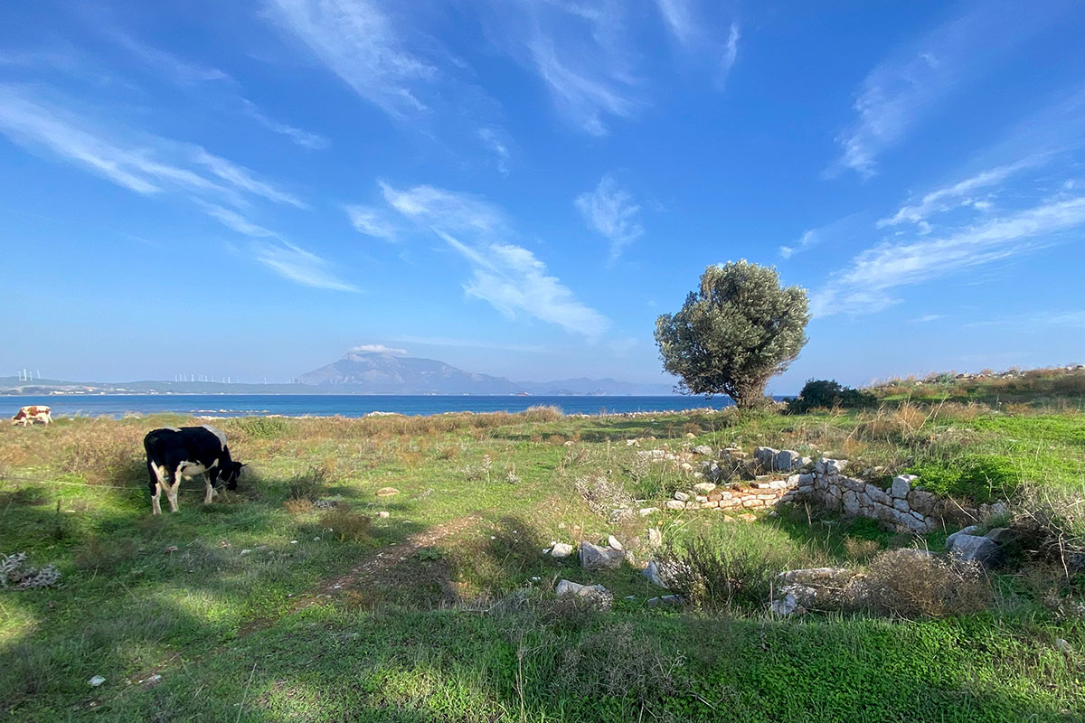 Şehrin hem içinde hem dışındadır aynı anda. Bir makinin ardında yüzünüzü denize dönüp otursanız geceleyin, samanyolu öyle bir serilir ki önünüze zifiri karanlıkta, dalgaların sesi öyle bir siler ki tüm sesleri, dünyanın en uzak köşesinde yapayalnız sanırsınız kendinizi. Sonra kalkıp iki adım yürüyünce evlerin, sitelerin yakınlığına şaşmamak elde değildir. Sanki bir eşikten geçip başka bir boyuta adım atmış gibi kalakalırız. Koşucular, yürüyüşçüler, bisikletçiler, yüzücüler, piknikçiler, balıkçılar hiç boş bırakmazlar burayı. O ferahlık hissi veren verimli, geniş tarlalarda sarıkızlar, kara boğalar otlar, köylüler patates, domates, enginar eker, zeytin ve bağ diker bin yıllık amforların, keşfedilmemiş antik zaman yapılarının biraz üstünde. Zamanı kavrayışımız yok oluverir.
