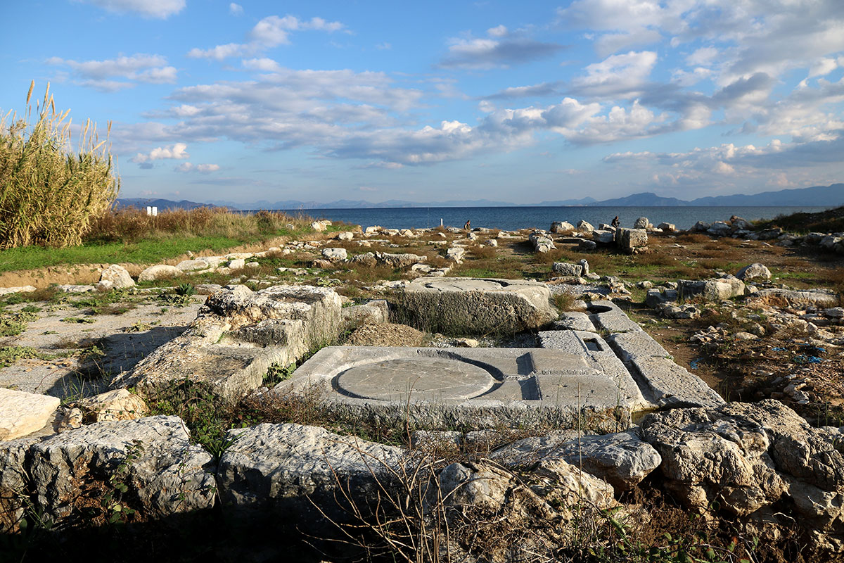 ANIT: Moloz taş ile yapılmış Dolia’lar. Bu dev depolama hacımları Hellenistik dönemde şarap ve zeytinyağı doluydu. Şimdilerde yengeçlerin evi. Görkemli bir tarihin mütevazi anıtları gibi ayakta kalmayı sürdürüyorlar. (Fotoğraf: Nesrin Aygün)